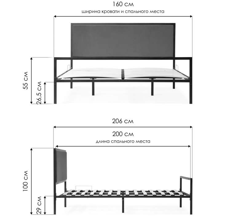Кровать Эгерт 160х200 черный / dark brown (160x206x100).