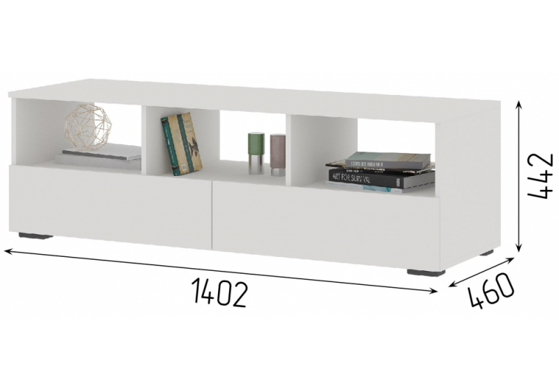 ТВ-тумба Элла ТБ 02 белый / белый (140,2x46x44,2)