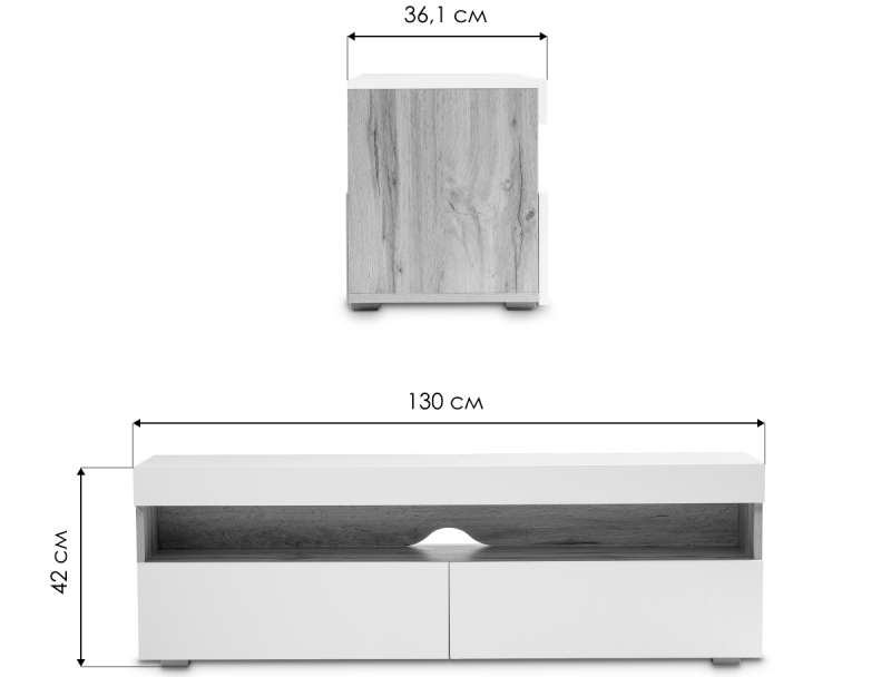 ТВ-тумбы Альба дуб золотой (craft) / белый премиум (130x36,1x42).