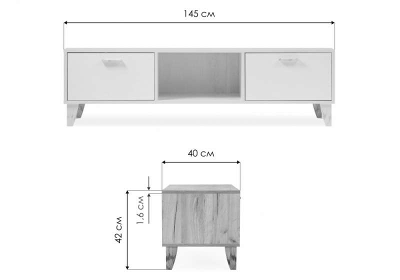 ТВ-тумбы Эго Т-3 на ножках бетон светлый / белый глянец (145x40,4x41,6).