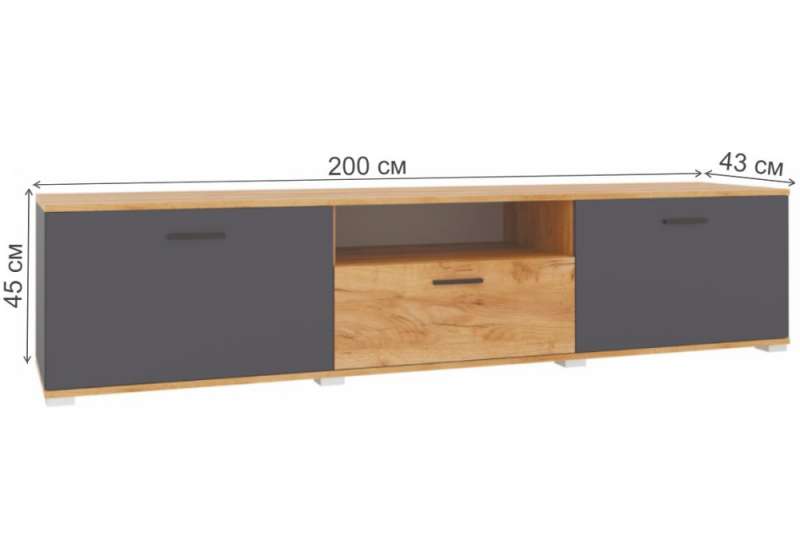 ТВ-тумбы Кассандра дуб крафт золотой / антрацит (200x43x45)