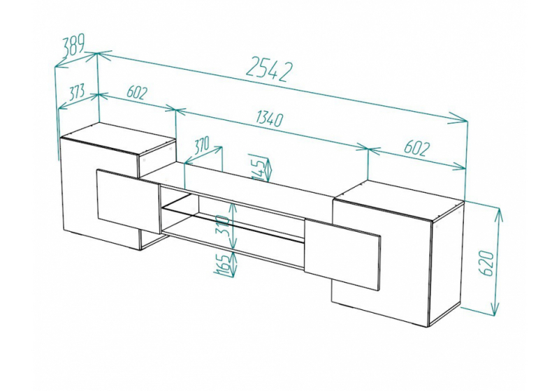 ТВ-тумба Лисмор белый / бетон светлый (254x39x62).