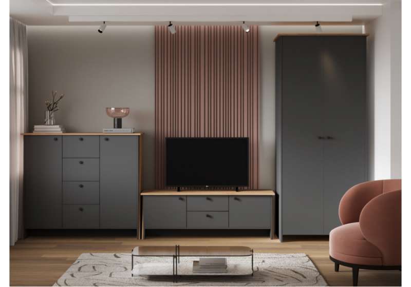 ТВ-тумбы Теодора графит / крафт золотой (144x42,2x50).