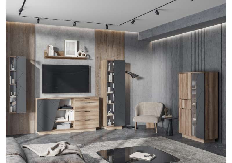 Шкафы Диамо ШК 02 софт графит / дуб каньон (90,2x40,2x160,2)