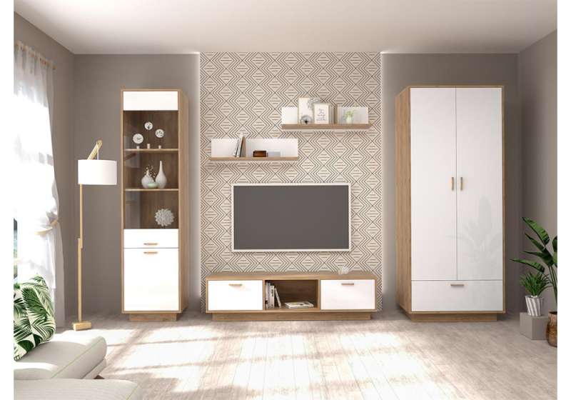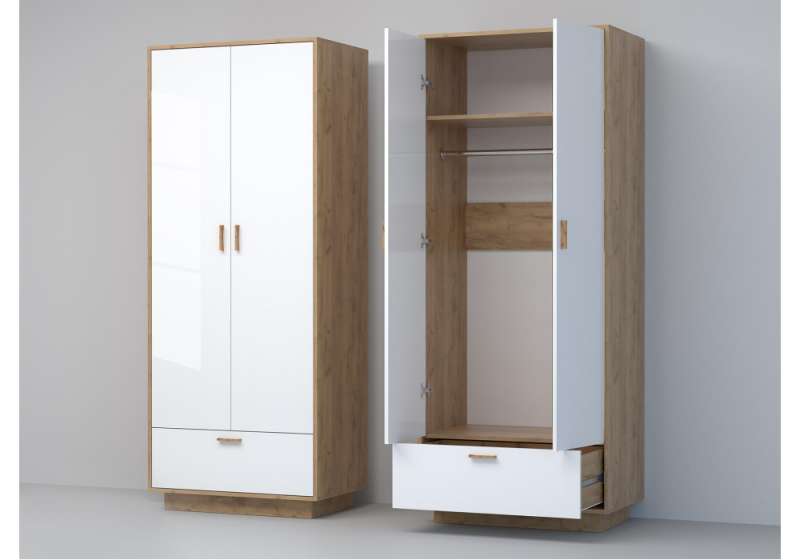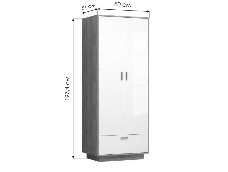 Шкафы Эго Шк-1 на подиуме дуб крафт золотой / белый глянец (80x51x197,4).
