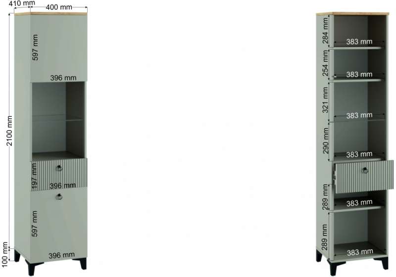 Шкафы Ника 400 бежевый мат-05 / кашемир / дуб делано (40x41x220).