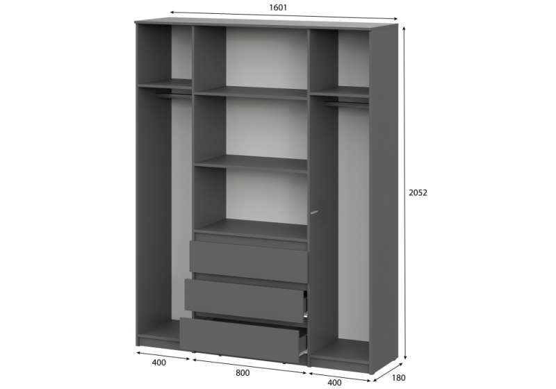 Шкаф Сибити четырехстворчатый графит серый (160,1x46,2x205,2)