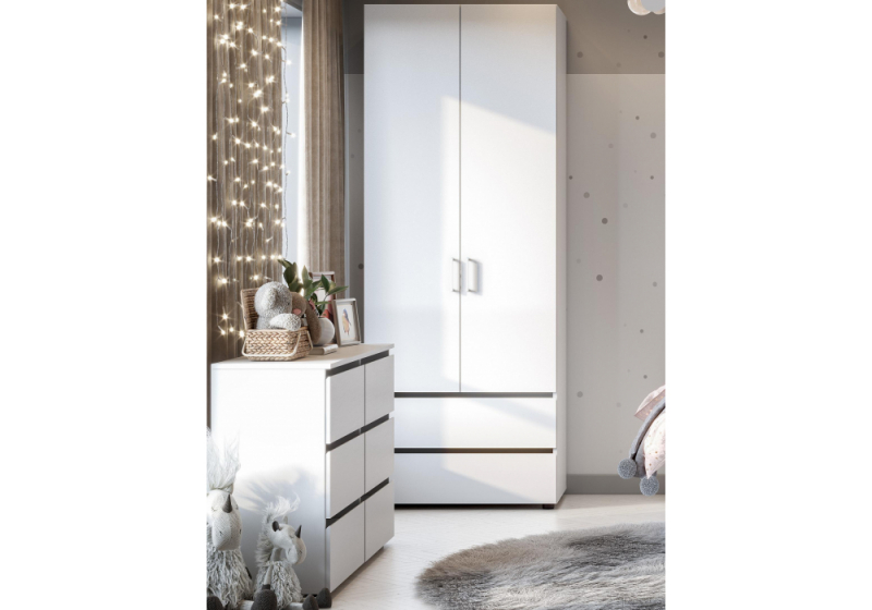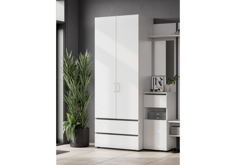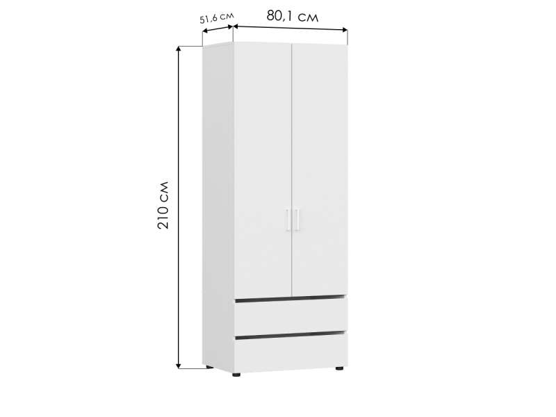 Шкаф двухстворчатый Валенсия белый текстурный (80,1x51,6x210)