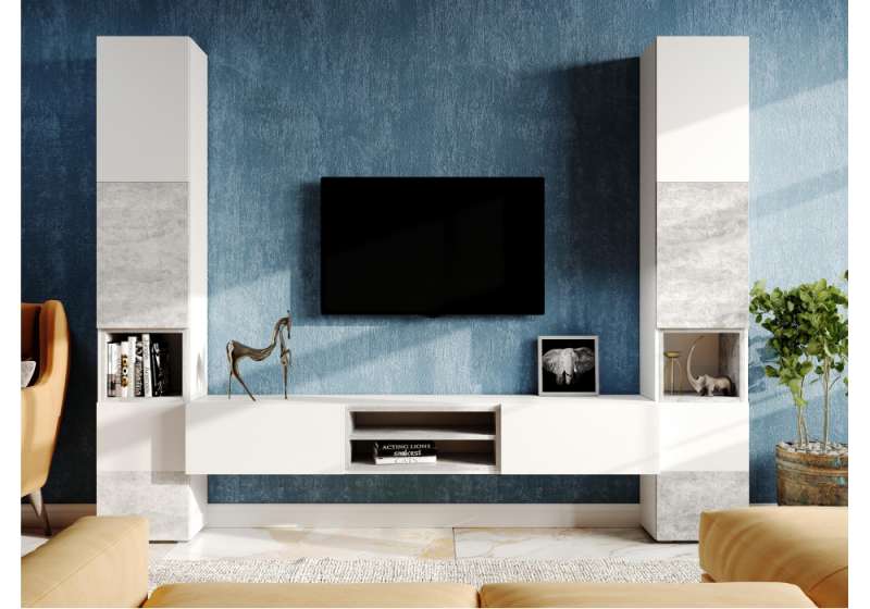 Стеллаж Лонгфорд белый / бетон светлый (40,2x30,4x217,6).
