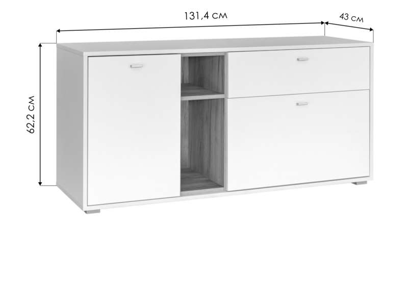 Комод Бэль 10.91 белый премиум / дуб золотой craft (131,4x43x62,2).