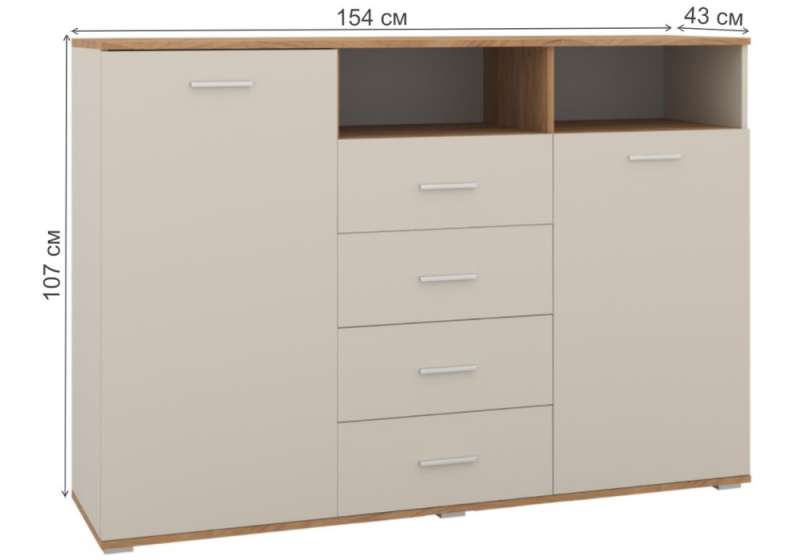 Комод Кассандра 154 дуб крафт золотой / кашемир (154x43x107)