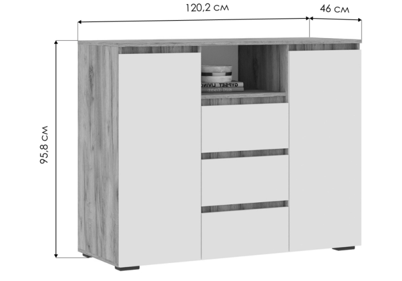 Комод Элла КМ 01 белый / дуб крафт золото (120,2x46x95,8).