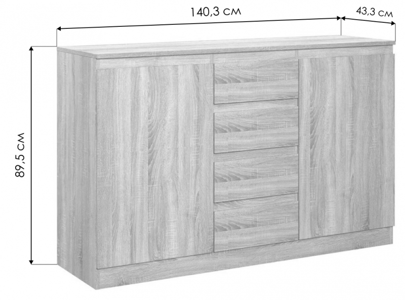 Комод Рунтроп Т-4 дуб сонома (140,3x43,3x89,5)