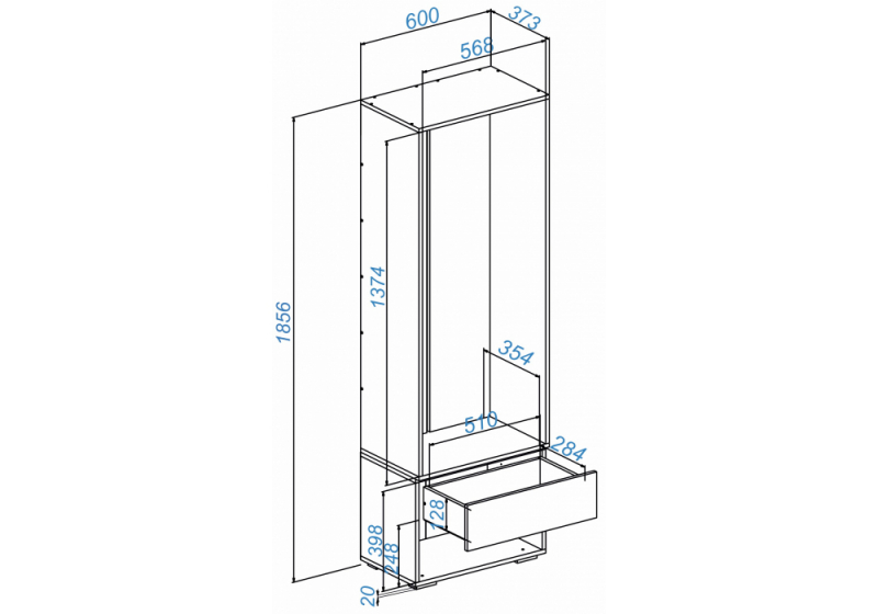 Прихожая Роут 0,6 м белый / графит (60x37,3x185,6).
