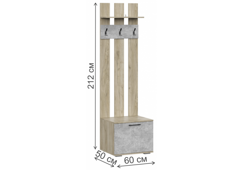 Прихожая Вальс ВШ-2 дуб крафт серый / бетонный камень (60x50x212).