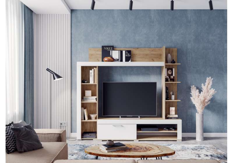 Готовые гостиные Касэль софт вайт / дуб крафт золото (199,2x36,6x181,2).