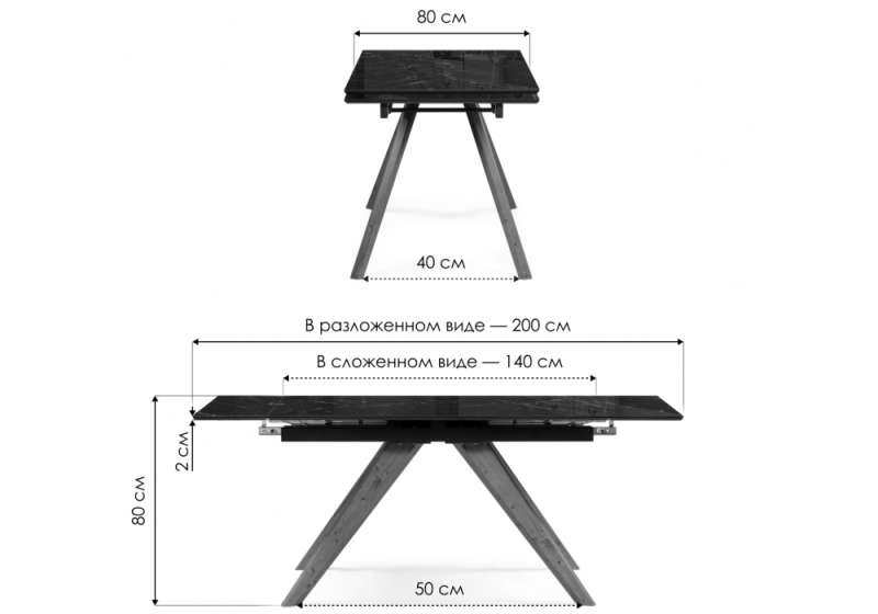 Длина стола в разложенном виде: 200 см.
