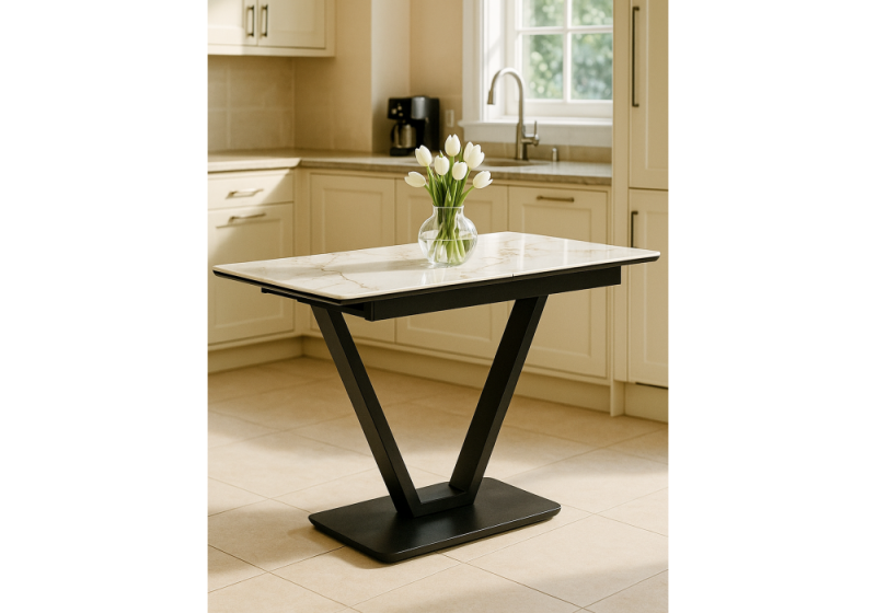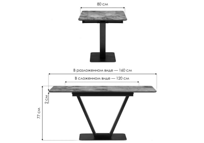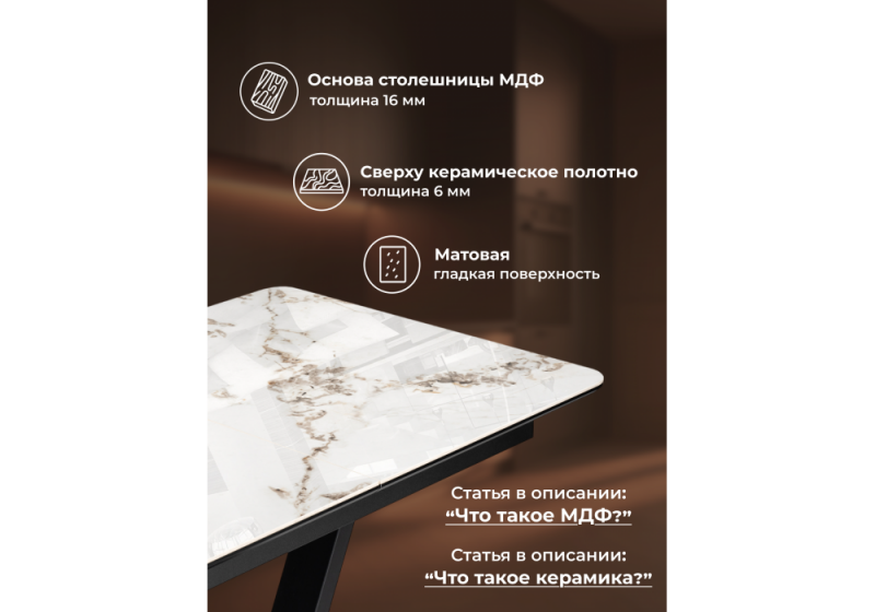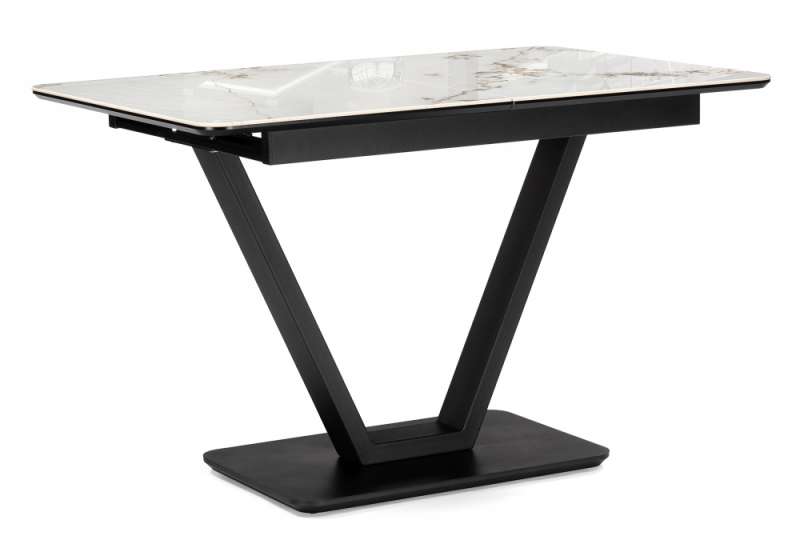 Керамический стол Бугун 120(160)х80х77 белый мрамор глянец / черный (80x77).