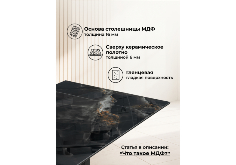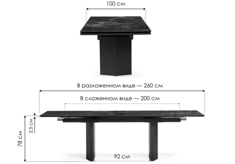 Керамический стол Монерон 200(260)х100х77 black paradise / черный (100x78).