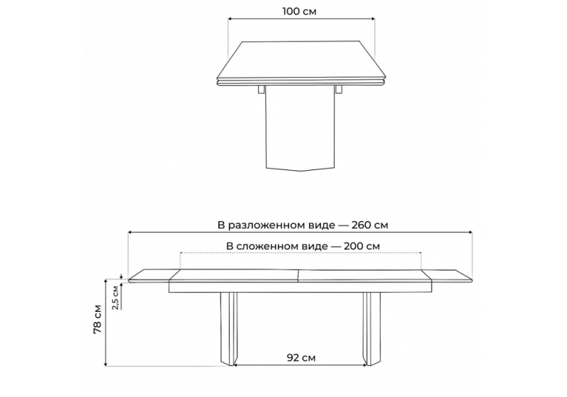 Расстояние между ножками: 92 см. Толщина столешницы: 2,5 см.