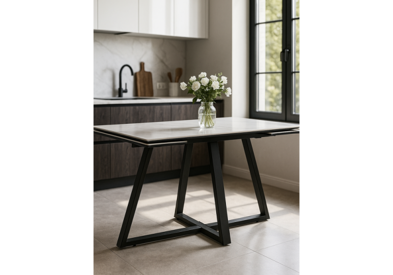 Керамический стол Памелла 140(200)х80х75 белый мрамор snow white / черный (80x75)