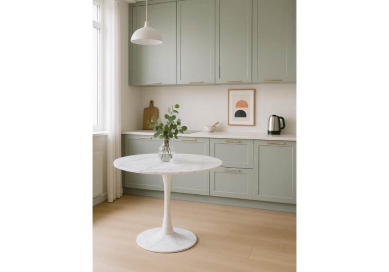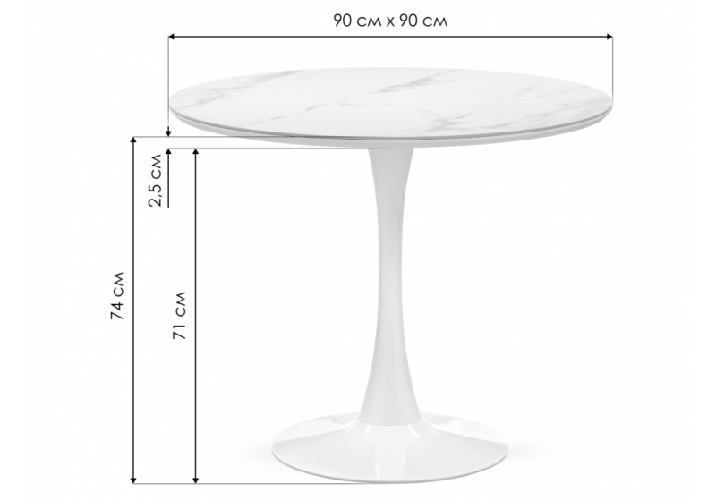Керамический стол Тулип 90х74 белый мрамор / белый