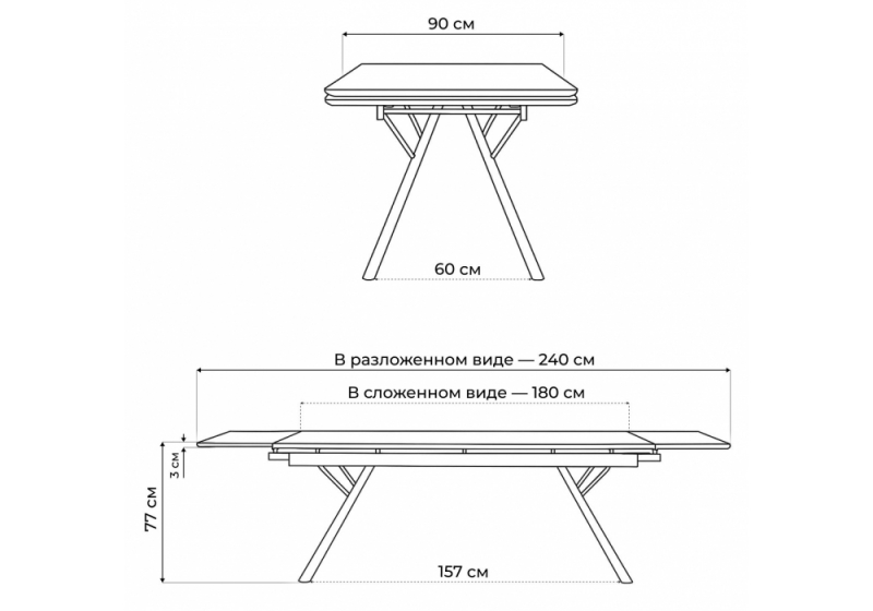 Длина стола в разложенном
