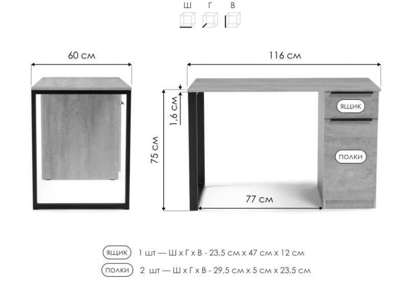 Компьютерный стол Бэтти Лофт 116х60х75 белый / черный матовый (60x75).