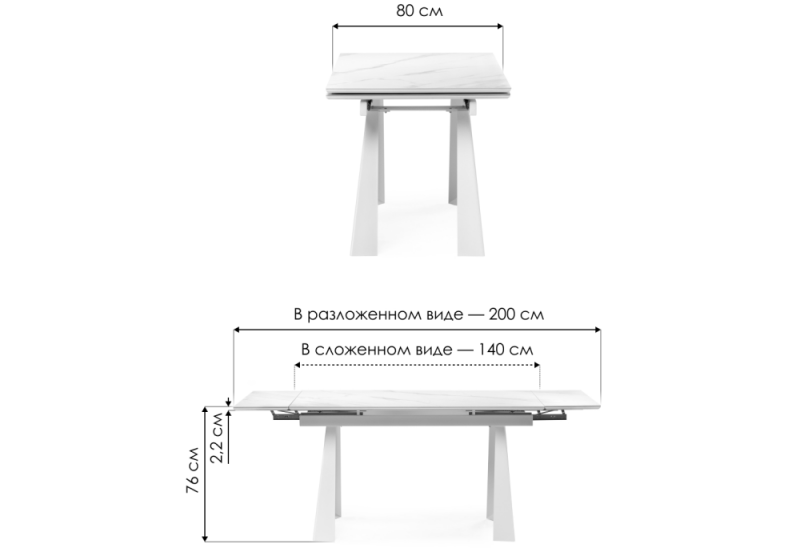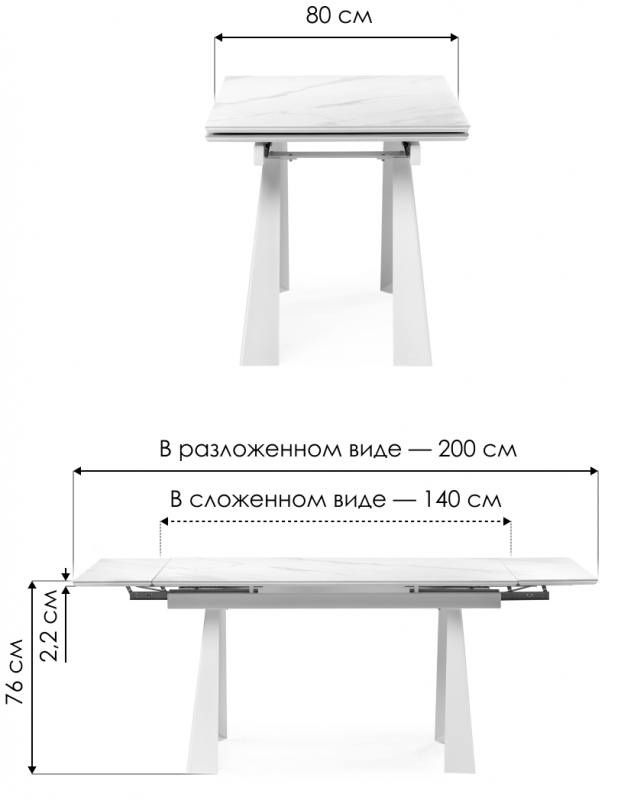 Длина стола в разложенном виде: 200 см.