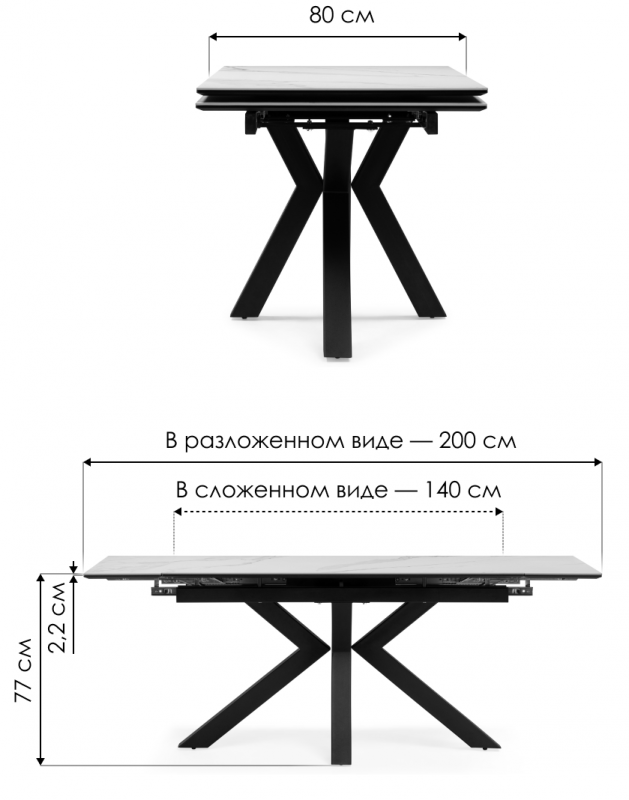 Керамический стол Бронхольм 140(200)х80х77 черный мрамор / черный (80x77).
