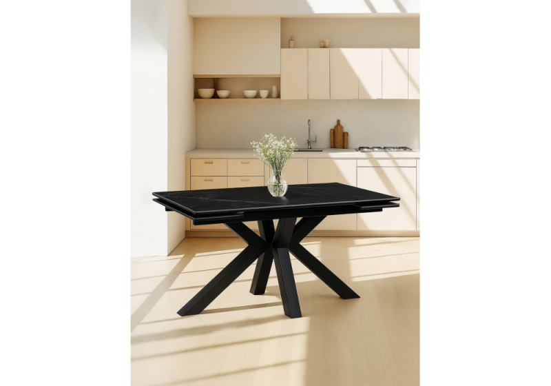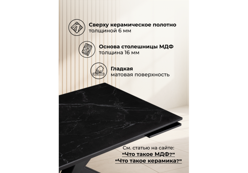 Керамический стол Бронхольм 140(200)х80х77 черный мрамор / черный (80x77)