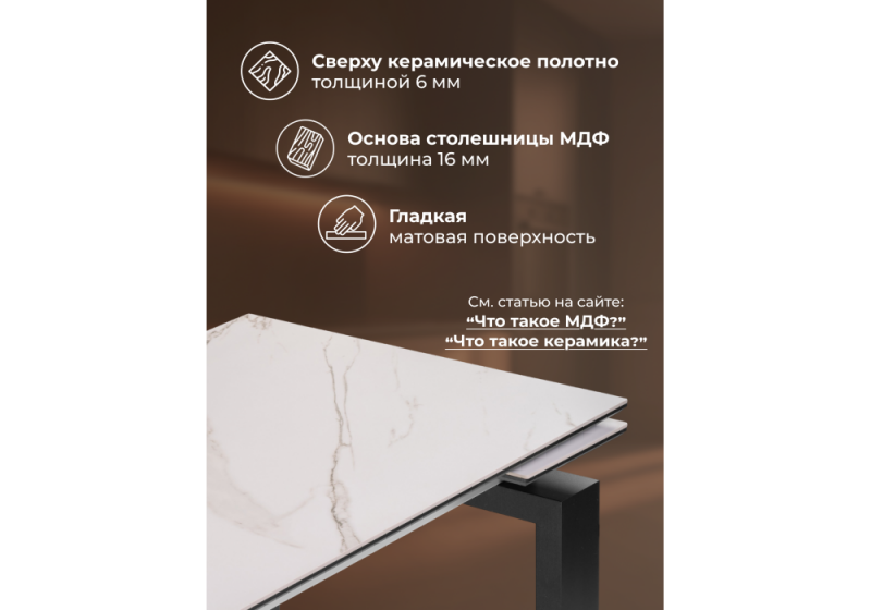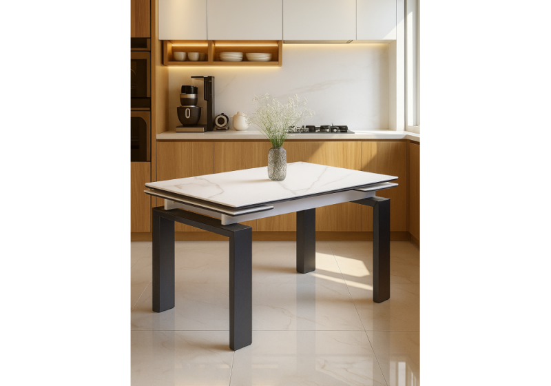 Керамический стол Давос 140(200)х80х78 белый мрамор / черный (80x78).