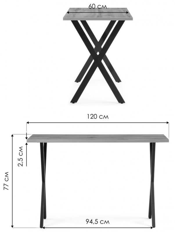 Стол деревянный Алеста Лофт 120х60х77 25 мм бетон / черный матовый (60x77).