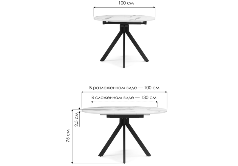 Стол деревянный Бетина мрамор белый / черный (100x75)