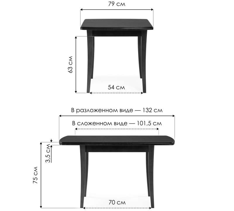 Длина стола в разложенном виде: 132 см.