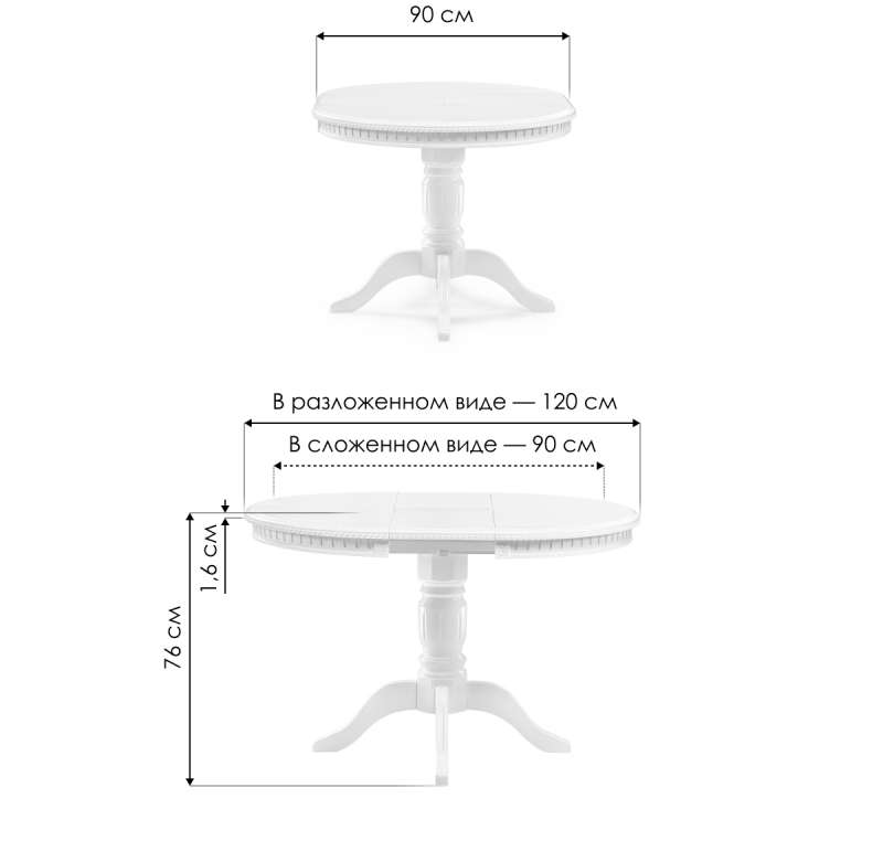 Длина стола в разложенном виде: 120 см.
