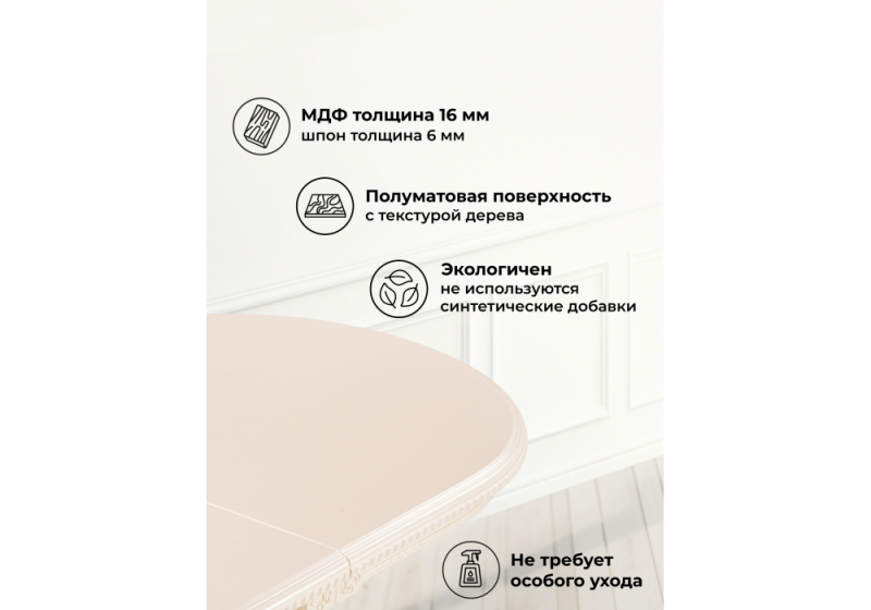Стол деревянный Эритрин овальный бежевый (80x77).