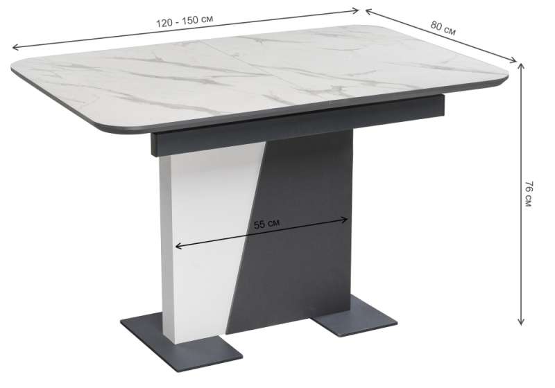 Стол деревянный Кларк 120(150)х80х76 белый / графит (80x76).
