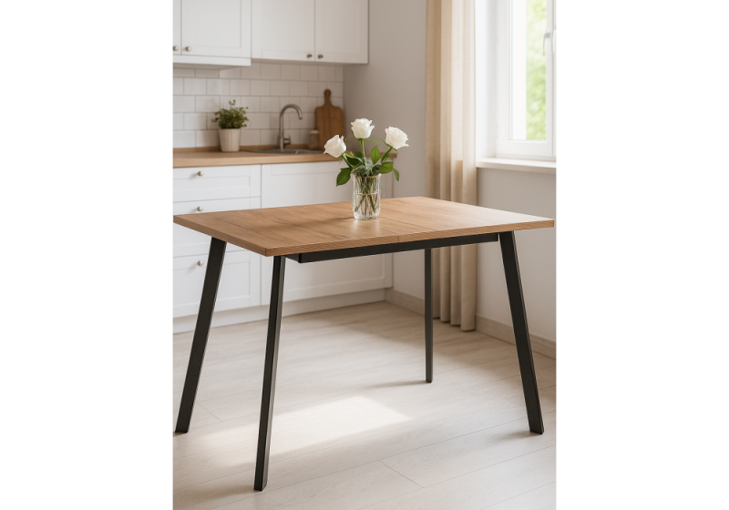 Стол деревянный Колон Лофт 120(160) х 75 черный матовый / дуб крафт золотой (75x75).