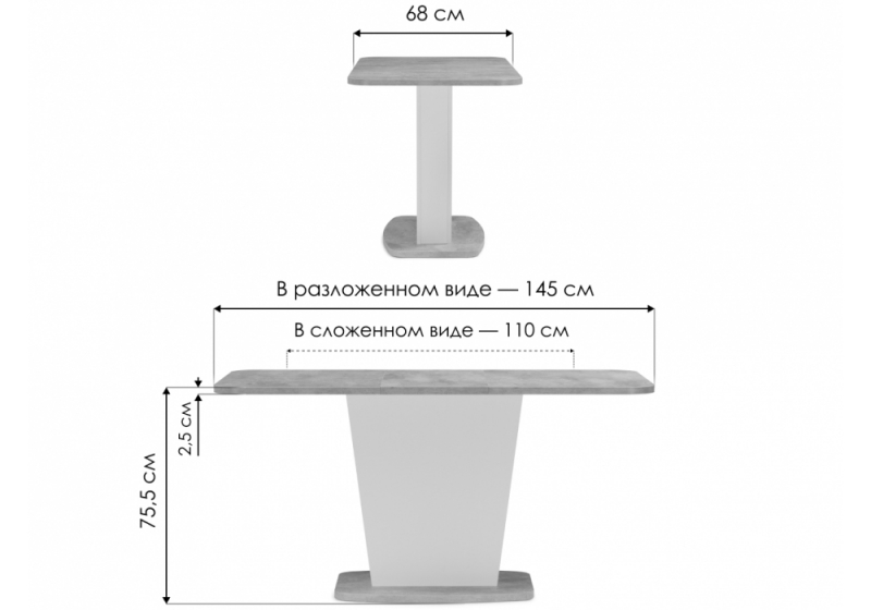 Длина стола в разложенном виде: 145 см.
