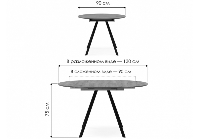 Длина стола в разложенном виде: 130 см.
