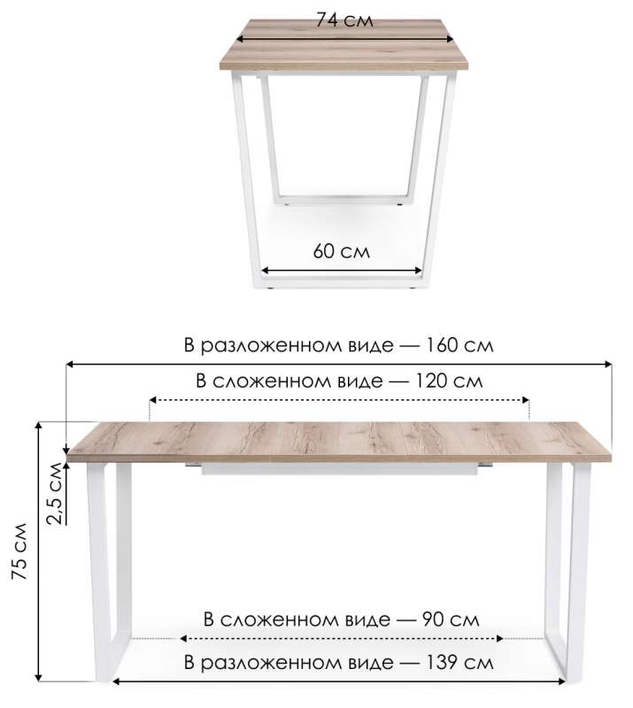 Стол деревянный Лота Лофт 120(160)х75х75 25 мм дуб делано светлый / матовый белый (75x75)