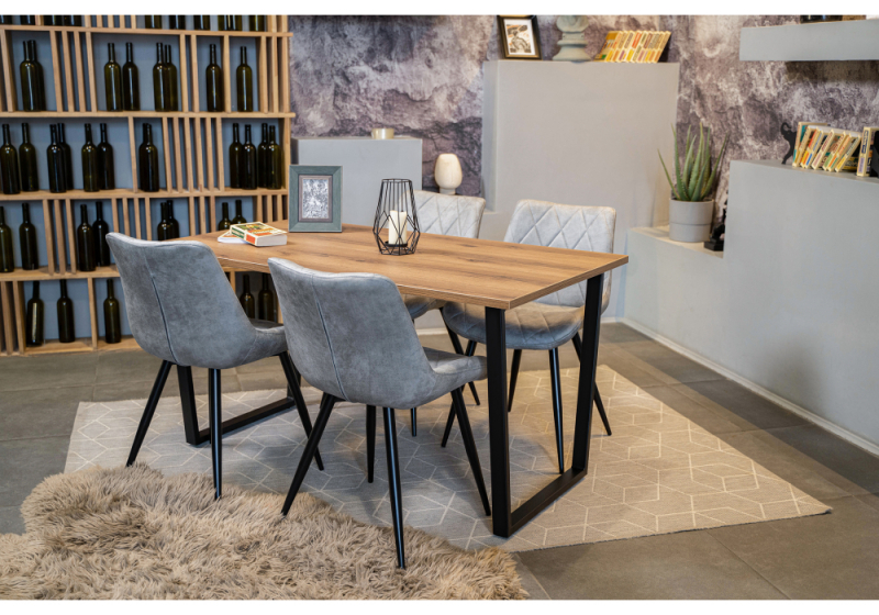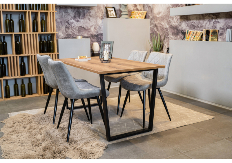 Стол деревянный Лота Лофт 140х80 черный матовый / дуб крафт золотой (80x75)