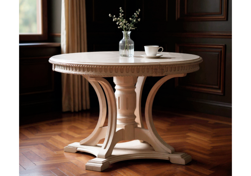 Стол деревянный Нозеан круглый белый / серебро (120x76).