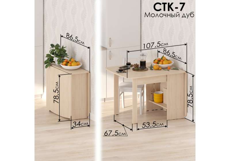 Стол деревянный раздвижной ДЕР СтК-7 дуб молочный (34,2x78,5).