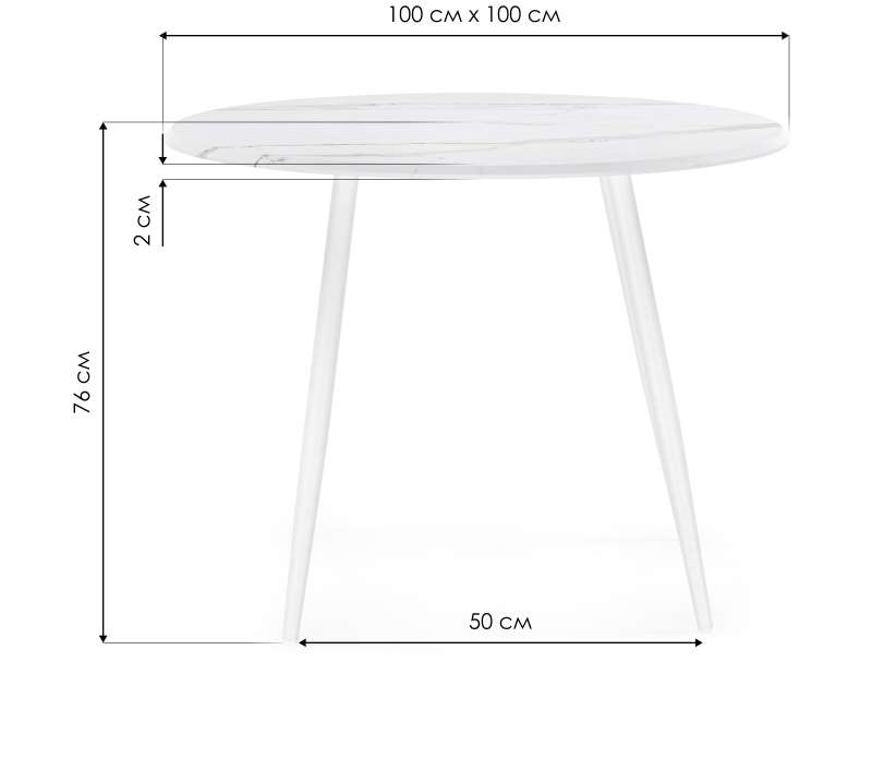 Расстояние между ножками: 50 х 50 см. Толщина столешницы: 2,2 см.