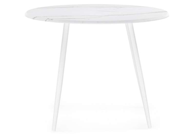 Стол деревянный Абилин 100 мрамор белый / белый матовый стол (100x76)