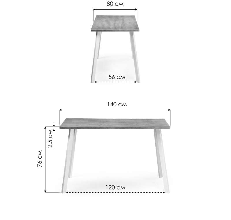 Стол деревянный Тринити Лофт 140x80x75 25 мм юта / белый матовый (80x75).