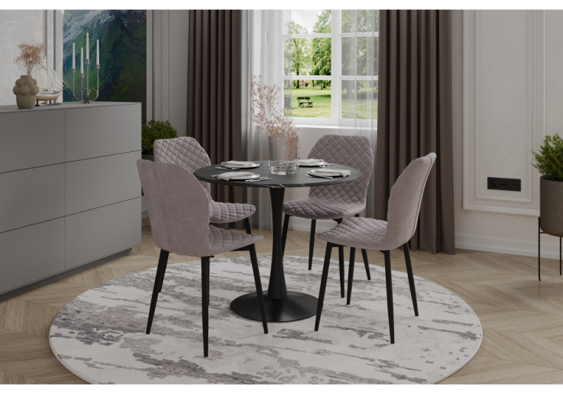 Стол деревянный Тулип 80х73 мрамор черный / черный (80x73)