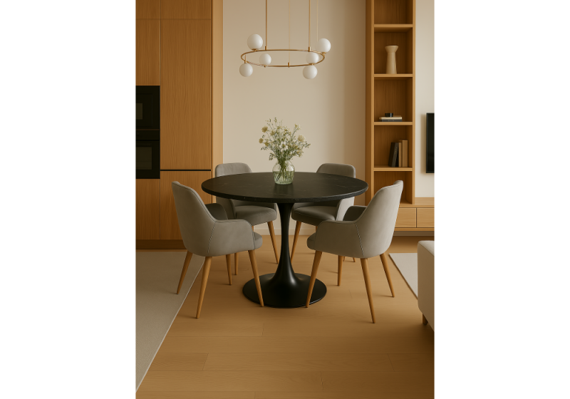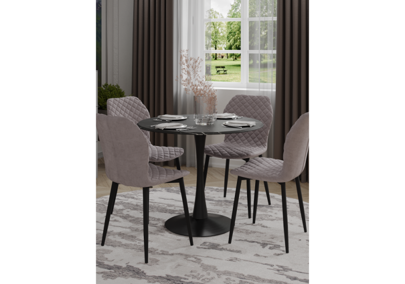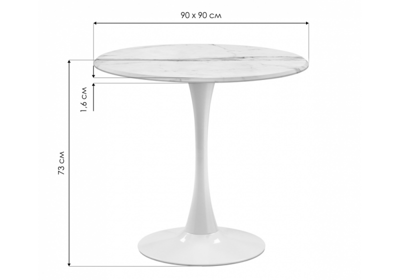 Стол деревянный Тулип 90х73 мрамор черный / черный (90x73)